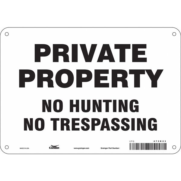 Safety Sign, Vertical Rectangle, Number of Printed Sides 1, English, Sign Format Other Format, Sign Legend Private Property No Hunting No Trespassing, Sign Legend Background Color White, Sign Legend Style Text