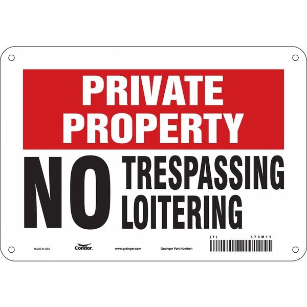 Safety Sign, Vertical Rectangle, Number of Printed Sides 1, English, Sign Format Other Format, Sign Legend No Trespassing No Loitering, Sign Legend Background Color Red, White, Sign Legend Style Text