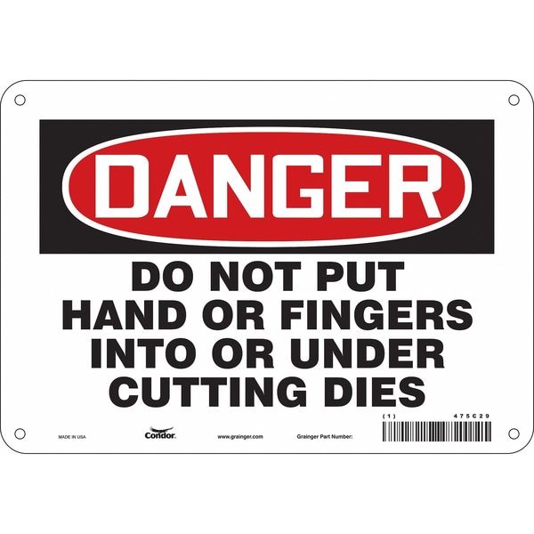 Safety Sign, Vertical Rectangle, Number of Printed Sides 1, English, Sign Format Traditional OSHA, Sign Legend Do Not Put Hands Or Fingers Into Or Under Cutting, Sign Legend Background Color White, Sign Legend Style Text