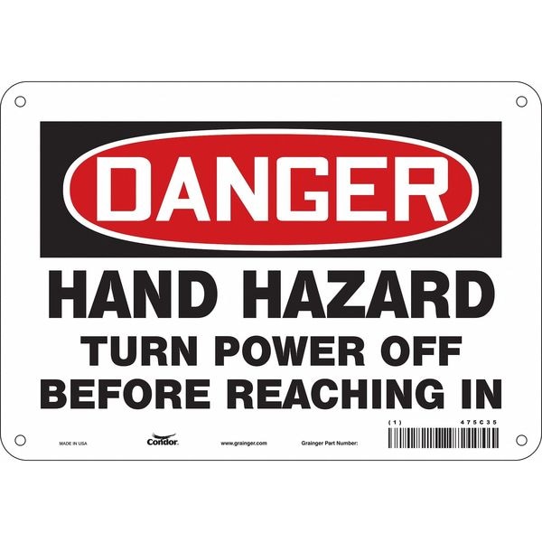 Safety Sign, Vertical Rectangle, Number of Printed Sides 1, English, Sign Format Traditional OSHA, Sign Legend Hand Hazard Turn Power Off Before Reaching In, Sign Legend Background Color White, Sign Legend Style Text