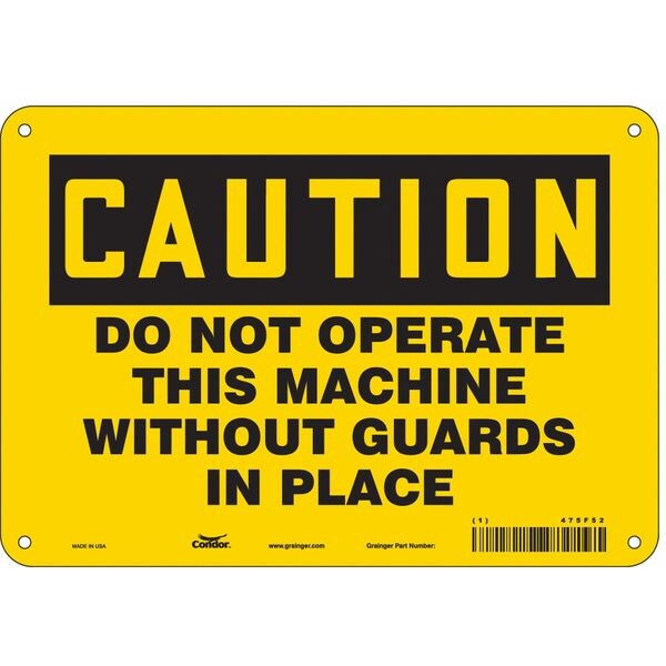 Safety Sign, Vertical Rectangle, Number of Printed Sides 1, English, Sign Format Traditional OSHA, Sign Legend Do Not Operate This Machine Without Guards In Place, Sign Legend Background Color Yellow, Sign Legend Style Text