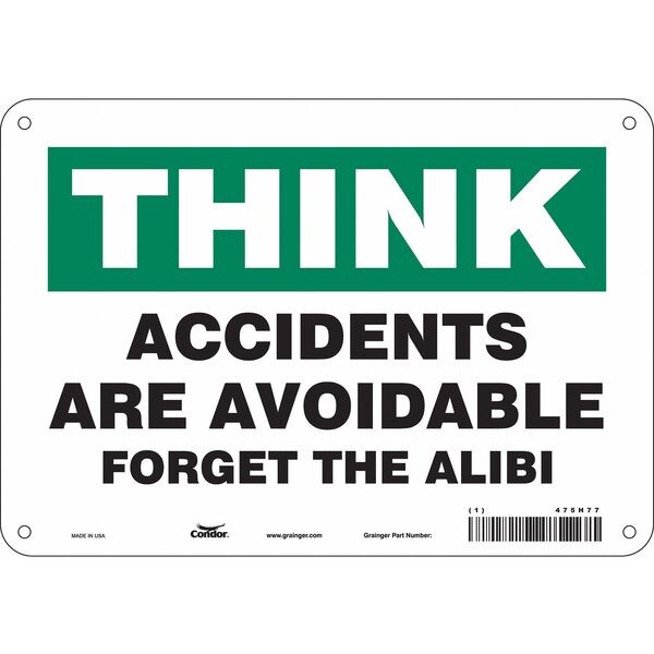 Safety Sign, Vertical Rectangle, Number of Printed Sides 1, English, Sign Format Other Format, Sign Legend Accidents Are Avoidable Forget The Alibi, Sign Legend Background Color Green, White, Sign Legend Style Text