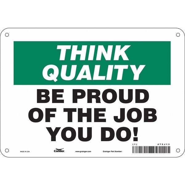 Safety Sign, Vertical Rectangle, Number of Printed Sides 1, English, Sign Format Other Format, Sign Legend Be Proud Of The Job You Do!, Sign Legend Background Color Green, White, Sign Legend Style Text