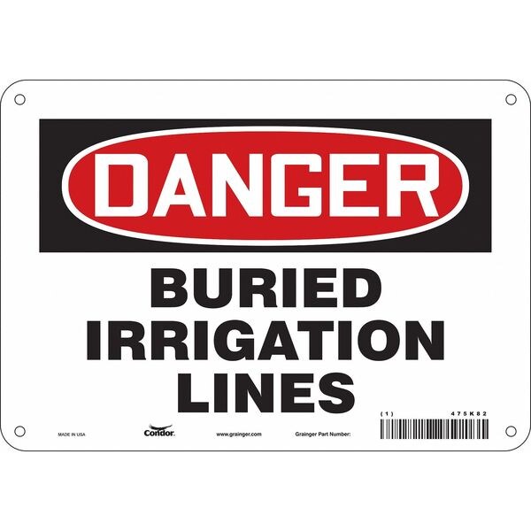 Safety Sign, Vertical Rectangle, Number of Printed Sides 1, English, Sign Format Traditional OSHA, Sign Legend Buried Irrigation Lines, Sign Legend Background Color White, Sign Legend Style Text