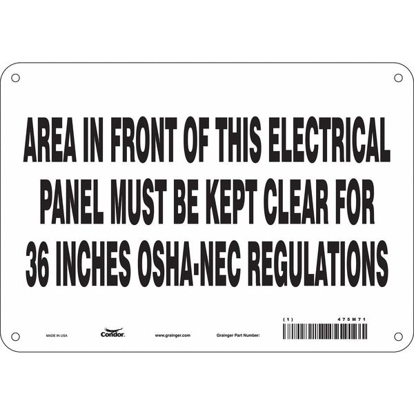 Safety Sign, Vertical Rectangle, Number of Printed Sides 1, English, Sign Format Other Format, Sign Legend Area In Front Of This Electrical Panel Must Be Kept Clear For 36 In Osha-Nec Regulations, Sign Legend Background Color White, Sign Legend Style Text