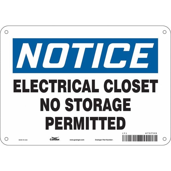 Safety Sign, Vertical Rectangle, Number of Printed Sides 1, English, Sign Format Traditional OSHA, Sign Legend Electrical Closet No Storage Permitted, Sign Legend Background Color White, Sign Legend Style Text