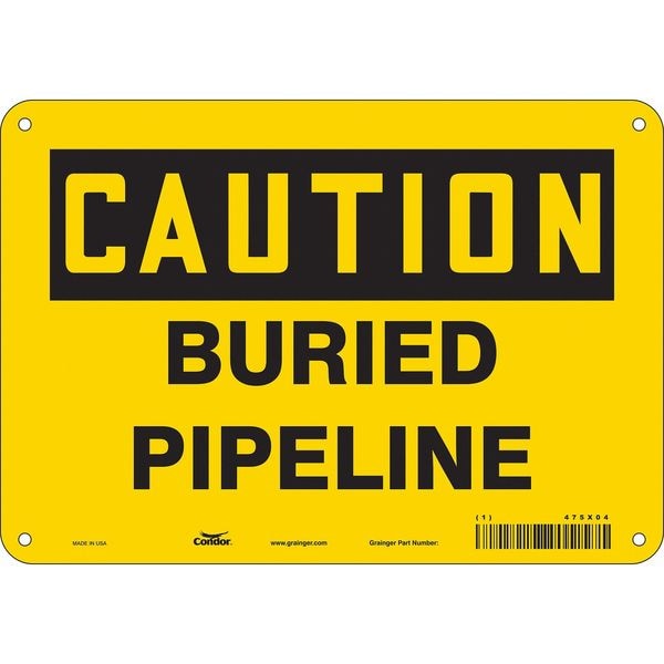 Safety Sign, Vertical Rectangle, Number of Printed Sides 1, English, Sign Format Traditional OSHA, Sign Legend Buried Pipeline, Sign Legend Background Color Yellow, Sign Legend Style Text
