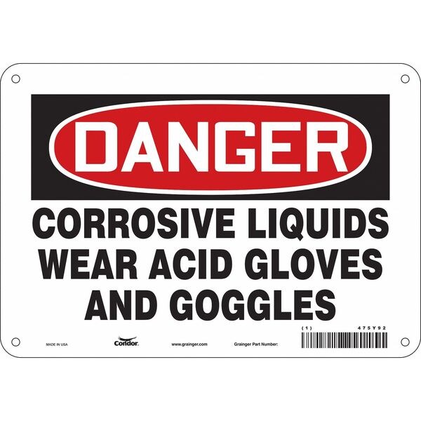 Safety Sign, Vertical Rectangle, Number of Printed Sides 1, English, Sign Format Traditional OSHA, Sign Legend Corrosive Liquids Wear Acid Gloves And Goggles, Sign Legend Background Color White, Sign Legend Style Text