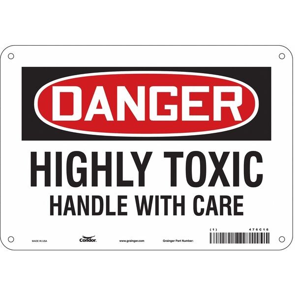 Safety Sign, Vertical Rectangle, Number of Printed Sides 1, English, Sign Format Traditional OSHA, Sign Legend Highly Toxic Handle With Care, Sign Legend Background Color White, Sign Legend Style Text