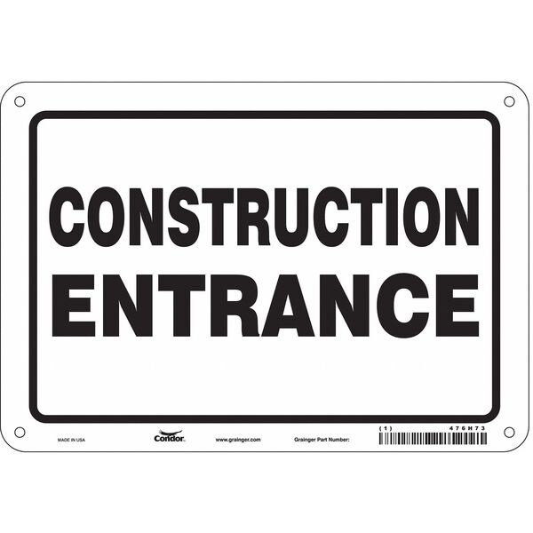 Safety Sign, Vertical Rectangle, Number of Printed Sides 1, English, Sign Format Other Format, Sign Legend Construction Entrance, Sign Legend Background Color White, Sign Legend Style Text