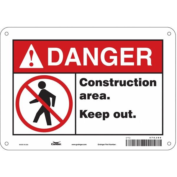 Safety Sign, Vertical Rectangle, Number of Printed Sides 1, English, Sign Format ANSI/OSHA Format, Sign Legend Construction Area. Keep Out., Sign Legend Background Color White, Sign Legend Style Symbol and Text