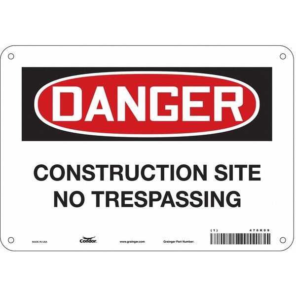 Safety Sign, Vertical Rectangle, Number of Printed Sides 1, English, Sign Format Traditional OSHA, Sign Legend Construction Site No Trespassing, Sign Legend Background Color White, Sign Legend Style Text