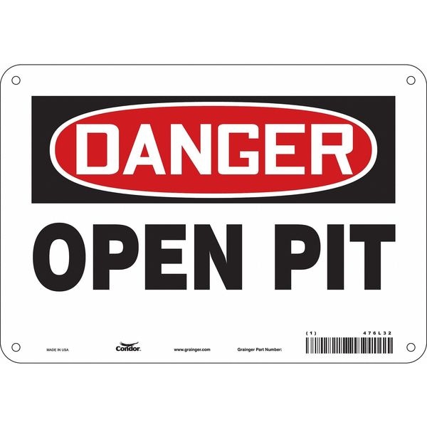 Safety Sign, Vertical Rectangle, Number of Printed Sides 1, English, Sign Format Traditional OSHA, Sign Legend Open Pit, Sign Legend Background Color White, Sign Legend Style Text