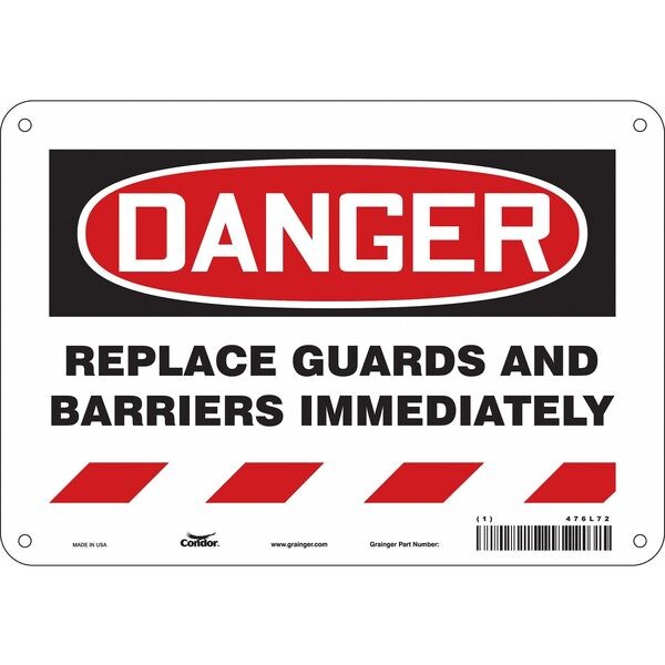 Safety Sign, Vertical Rectangle, Number of Printed Sides 1, English, Sign Format Traditional OSHA, Sign Legend Replace Guards And Barriers Immediately, Sign Legend Background Color White, Sign Legend Style Symbol and Text