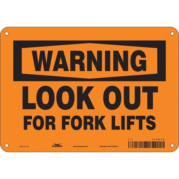 Safety Sign, Vertical Rectangle, Number of Printed Sides 1, English, Sign Format Traditional OSHA, Sign Legend Look Out For Fork Lifts, Sign Legend Background Color Orange, Sign Legend Style Text