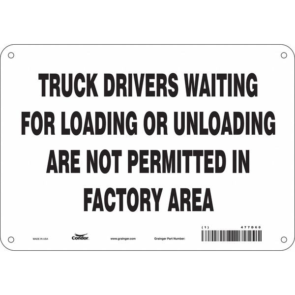 Safety Sign, Vertical Rectangle, Number of Printed Sides 1, English, Sign Format Other Format, Sign Legend Truck Drivers Waiting For Loading Or Unloading Are Not Permitted In Factory Area, Sign Legend Background Color White, Sign Legend Style Text