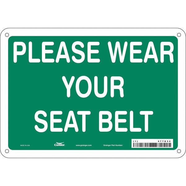 Safety Sign, Vertical Rectangle, Number of Printed Sides 1, English, Sign Format Other Format, Sign Legend Please Wear Your Seat Belt, Sign Legend Background Color Green, Sign Legend Style Text