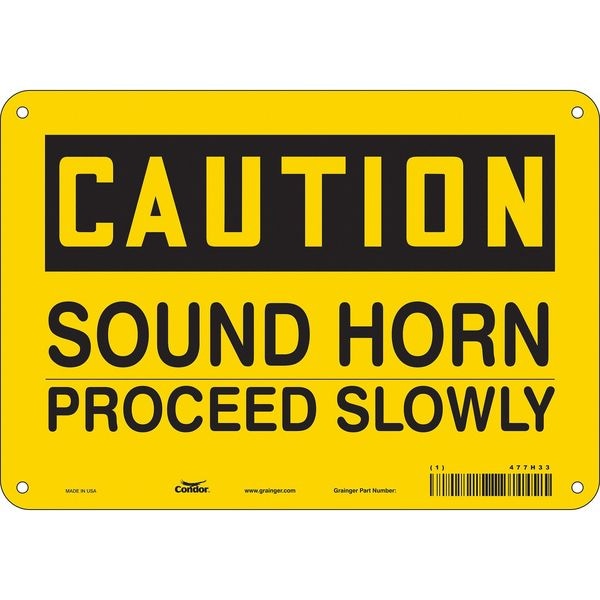 Safety Sign, Vertical Rectangle, Number of Printed Sides 1, English, Sign Format Traditional OSHA, Sign Legend Sound Horn Proceed Slowly, Sign Legend Background Color Yellow, Sign Legend Style Text