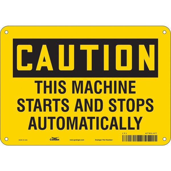 Safety Sign, Vertical Rectangle, Number of Printed Sides 1, English, Sign Format Traditional OSHA, Sign Legend This Machine Starts And Stops Automatically, Sign Legend Background Color Yellow, Sign Legend Style Text