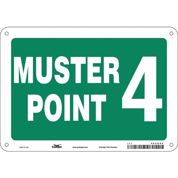 Safety Sign, Vertical Rectangle, Number of Printed Sides 1, English, Sign Format Other Format, Sign Legend Muster Point 4, Sign Legend Background Color Green, Sign Legend Style Text
