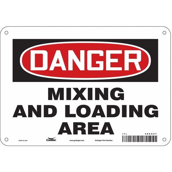 Safety Sign, Vertical Rectangle, Number of Printed Sides 1, English, Sign Format Traditional OSHA, Sign Legend Mixing And Loading Area, Sign Legend Background Color White, Sign Legend Style Text