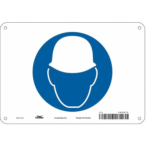 Safety Sign, Vertical Rectangle, Number of Printed Sides 1, English, Sign Format Other Format, Sign Legend Hard Hat Symbol, Sign Legend Background Color White, Sign Legend Style Symbol