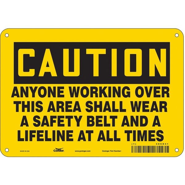 Safety Sign, Vertical Rectangle, Number of Printed Sides 1, English, Sign Format Traditional OSHA, Sign Legend Anyone Working Over This Area Shall Wear A Safety Belt And A Lifeline At All Times, Sign Legend Background Color Yellow, Sign Legend Style Text