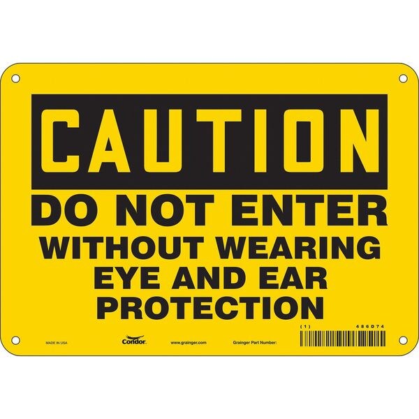 Safety Sign, Vertical Rectangle, Number of Printed Sides 1, English, Sign Format Traditional OSHA, Sign Legend Do Not Enter Without Wearing Eye And Ear Protection, Sign Legend Background Color Yellow, Sign Legend Style Text