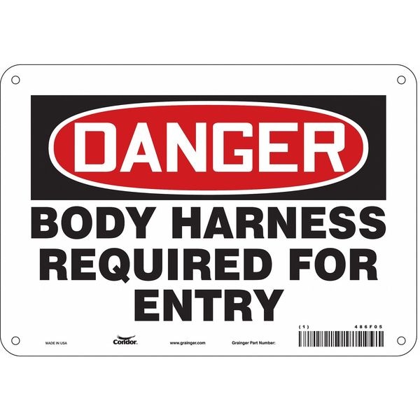 Safety Sign, Vertical Rectangle, Number of Printed Sides 1, English, Sign Format Traditional OSHA, Sign Legend Body Harness Required For Entry, Sign Legend Background Color White, Sign Legend Style Text
