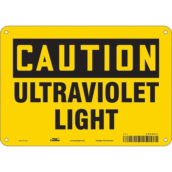 Safety Sign, Vertical Rectangle, Number of Printed Sides 1, English, Sign Format Traditional OSHA, Sign Legend Ultraviolet Light, Sign Legend Background Color Yellow, Sign Legend Style Text