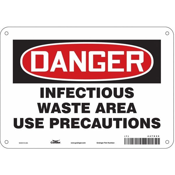 Safety Sign, Vertical Rectangle, Number of Printed Sides 1, English, Sign Format Traditional OSHA, Sign Legend Infectious Waste Area Use Precautions, Sign Legend Background Color White, Sign Legend Style Text