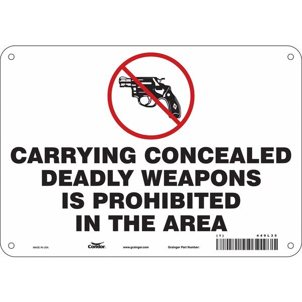 Safety Sign, Vertical Rectangle, Number of Printed Sides 1, English, Sign Format Other Format, Sign Legend Carrying Concealed Deadly Weapons Is Prohibited In The Area, Sign Legend Background Color White, Sign Legend Style Symbol and Text