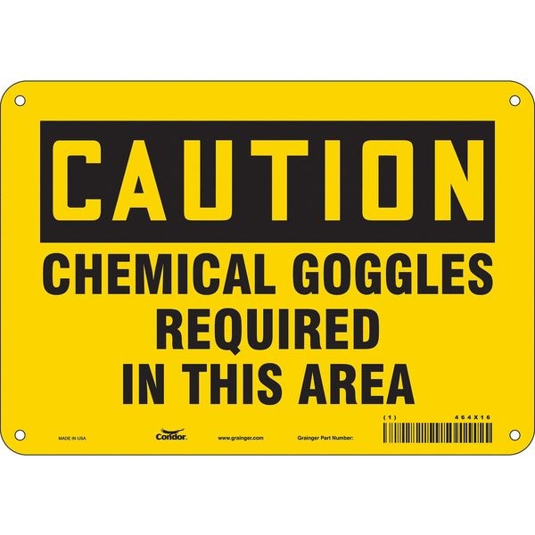 Safety Sign, Vertical Rectangle, Number of Printed Sides 1, English, Sign Format Traditional OSHA, Sign Legend Chemical Goggles Required In This Area, Sign Legend Background Color Yellow, Sign Legend Style Text