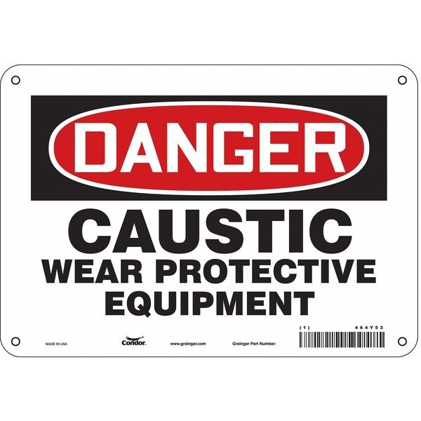 Safety Sign, Vertical Rectangle, Number of Printed Sides 1, English, Sign Format Traditional OSHA, Sign Legend Caustic Wear Protective Equipment, Sign Legend Background Color White, Sign Legend Style Text