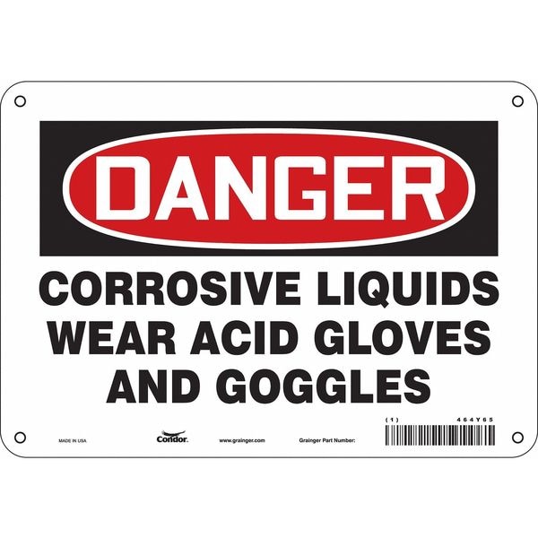 Safety Sign, Vertical Rectangle, Number of Printed Sides 1, English, Sign Format Traditional OSHA, Sign Legend Corrosive Liquids Wear Acid Gloves And Goggles, Sign Legend Background Color White, Sign Legend Style Text