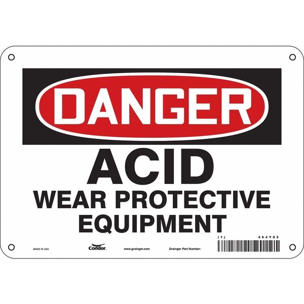 Safety Sign, Vertical Rectangle, Number of Printed Sides 1, English, Sign Format Traditional OSHA, Sign Legend Acid Wear Protective Equipment, Sign Legend Background Color White, Sign Legend Style Text
