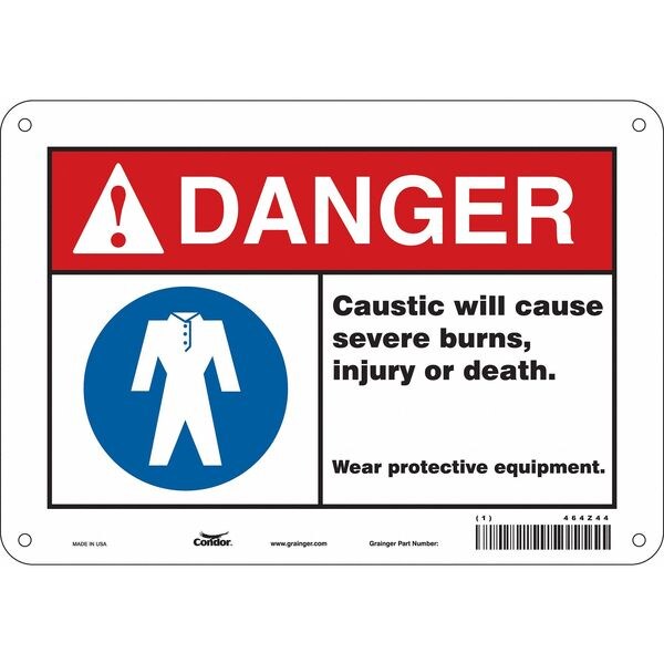 Safety Sign, Vertical Rectangle, Number of Printed Sides 1, English, Sign Format ANSI/OSHA Format, Sign Legend Caustic Will Cause Severe Burns, Injury Or Death. Wear Protective Equipment., Sign Legend Background Color White, Sign Legend Style Symbol and Text