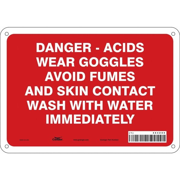 Safety Sign, Vertical Rectangle, Number of Printed Sides 1, English, Sign Format Other Format, Sign Legend Danger-Acids Wear Goggles Avoid Fumes And Skin Contact Wash With Water Immediately, Sign Legend Background Color Red, White, Sign Legend Style Text