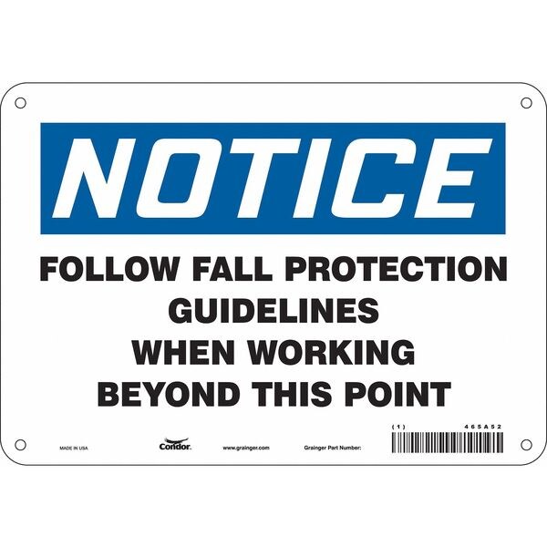 Safety Sign, Vertical Rectangle, Number of Printed Sides 1, English, Sign Format Traditional OSHA, Sign Legend Follow Fall Protection Guidelines When Working Beyond This Point, Sign Legend Background Color White, Sign Legend Style Text