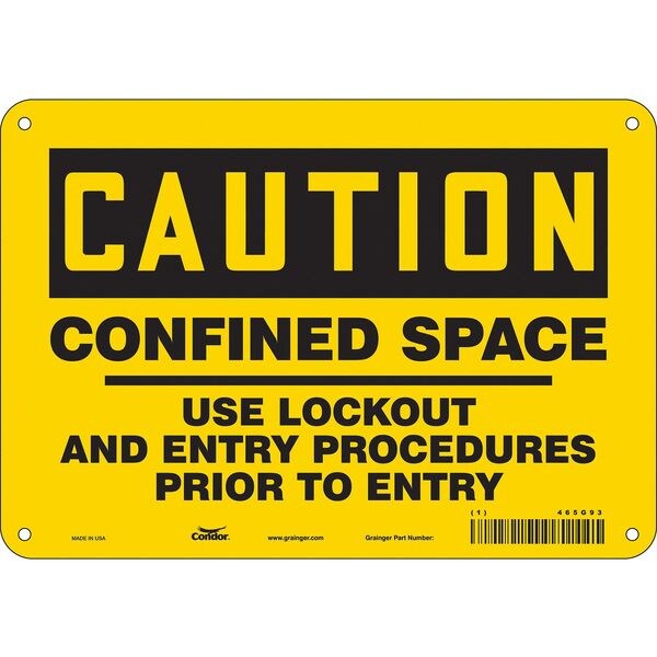 Safety Sign, Vertical Rectangle, Number of Printed Sides 1, English, Sign Format Traditional OSHA, Sign Legend Confined Space Use Lockout And Entry Procedures Prior To Entry, Sign Legend Background Color Yellow, Sign Legend Style Text