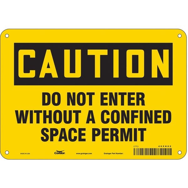 Safety Sign, Vertical Rectangle, Number of Printed Sides 1, English, Sign Format Traditional OSHA, Sign Legend Do Not Enter Without A Confined Space Permit, Sign Legend Background Color Yellow, Sign Legend Style Text