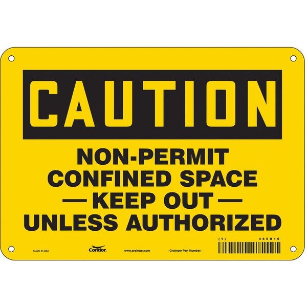 Safety Sign, Vertical Rectangle, Number of Printed Sides 1, English, Sign Format Traditional OSHA, Sign Legend Non-Permit Confined Space -Keep Out- Unless Authorized, Sign Legend Background Color Yellow, Sign Legend Style Text