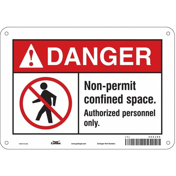 Safety Sign, Vertical Rectangle, Number of Printed Sides 1, English, Sign Format ANSI/OSHA Format, Sign Legend Non-Permit Confined Space. Authorized Personnel Only., Sign Legend Background Color White, Sign Legend Style Symbol and Text