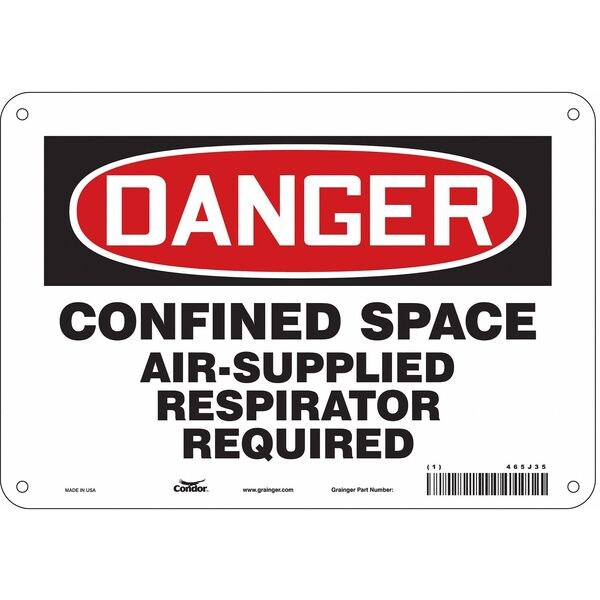Safety Sign, Vertical Rectangle, Number of Printed Sides 1, English, Sign Format Traditional OSHA, Sign Legend Confined Space Air-Supplied Respirator Required, Sign Legend Background Color White, Sign Legend Style Text