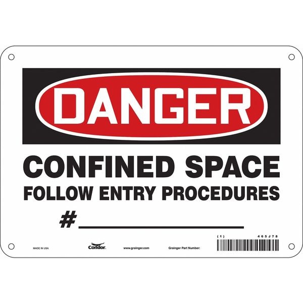 Safety Sign, Vertical Rectangle, Number of Printed Sides 1, English, Sign Format Traditional OSHA, Sign Legend Confined Space Follow Entry Procedures No. _____, Sign Legend Background Color White, Sign Legend Style Text