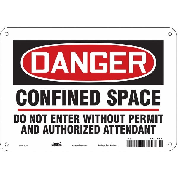 Safety Sign, Vertical Rectangle, Number of Printed Sides 1, English, Sign Format Traditional OSHA, Sign Legend Confined Space Do Not Enter Without Permit And Authorized Attendant, Sign Legend Background Color White, Sign Legend Style Text