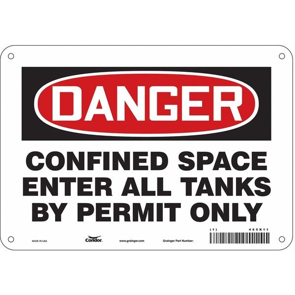 Safety Sign, Vertical Rectangle, Number of Printed Sides 1, English, Sign Format Traditional OSHA, Sign Legend Confined Space Enter All Tanks By Permit Only, Sign Legend Background Color White, Sign Legend Style Text
