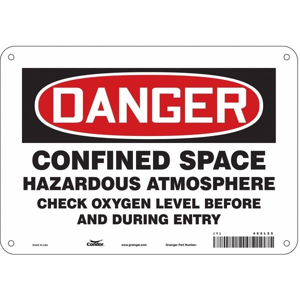 Safety Sign, Vertical Rectangle, Number of Printed Sides 1, English, Sign Format Traditional OSHA, Sign Legend Confined Space Hazardous Atmosphere Check Oxygen Level Before And During Entry, Sign Legend Background Color White, Sign Legend Style Text