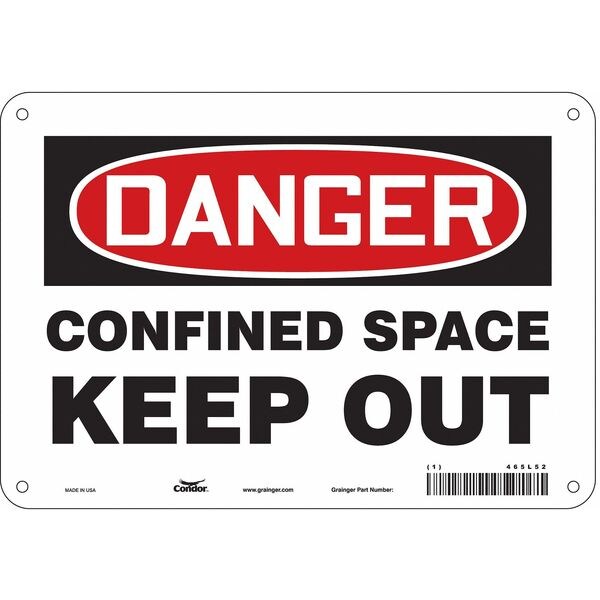 Safety Sign, Vertical Rectangle, Number of Printed Sides 1, English, Sign Format Traditional OSHA, Sign Legend Confined Space Keep Out, Sign Legend Background Color White, Sign Legend Style Text