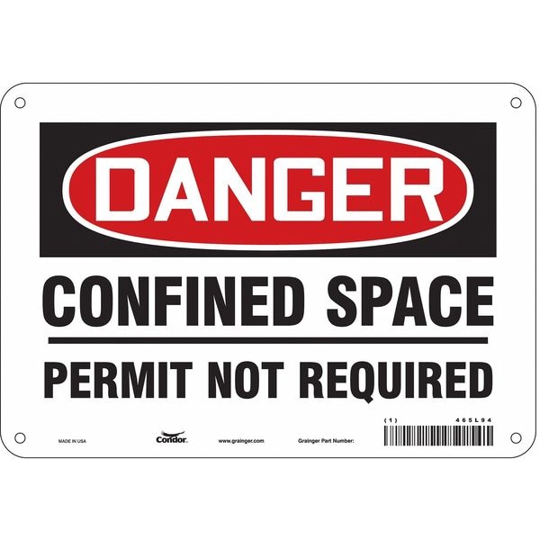 Safety Sign, Vertical Rectangle, Number of Printed Sides 1, English, Sign Format Traditional OSHA, Sign Legend Confined Space Permit Not Required, Sign Legend Background Color White, Sign Legend Style Text